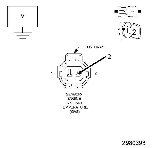5. Measure the voltage of the (K2) ECT 1 Signal circuit in the ECT Sensor 1 harness connector.