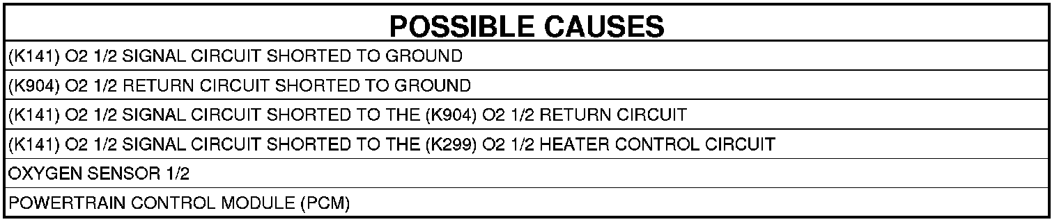 - Repair the short between the (K904) O2 1/2 Return circuit and the (K141) O2 1/2 Signal circuit.