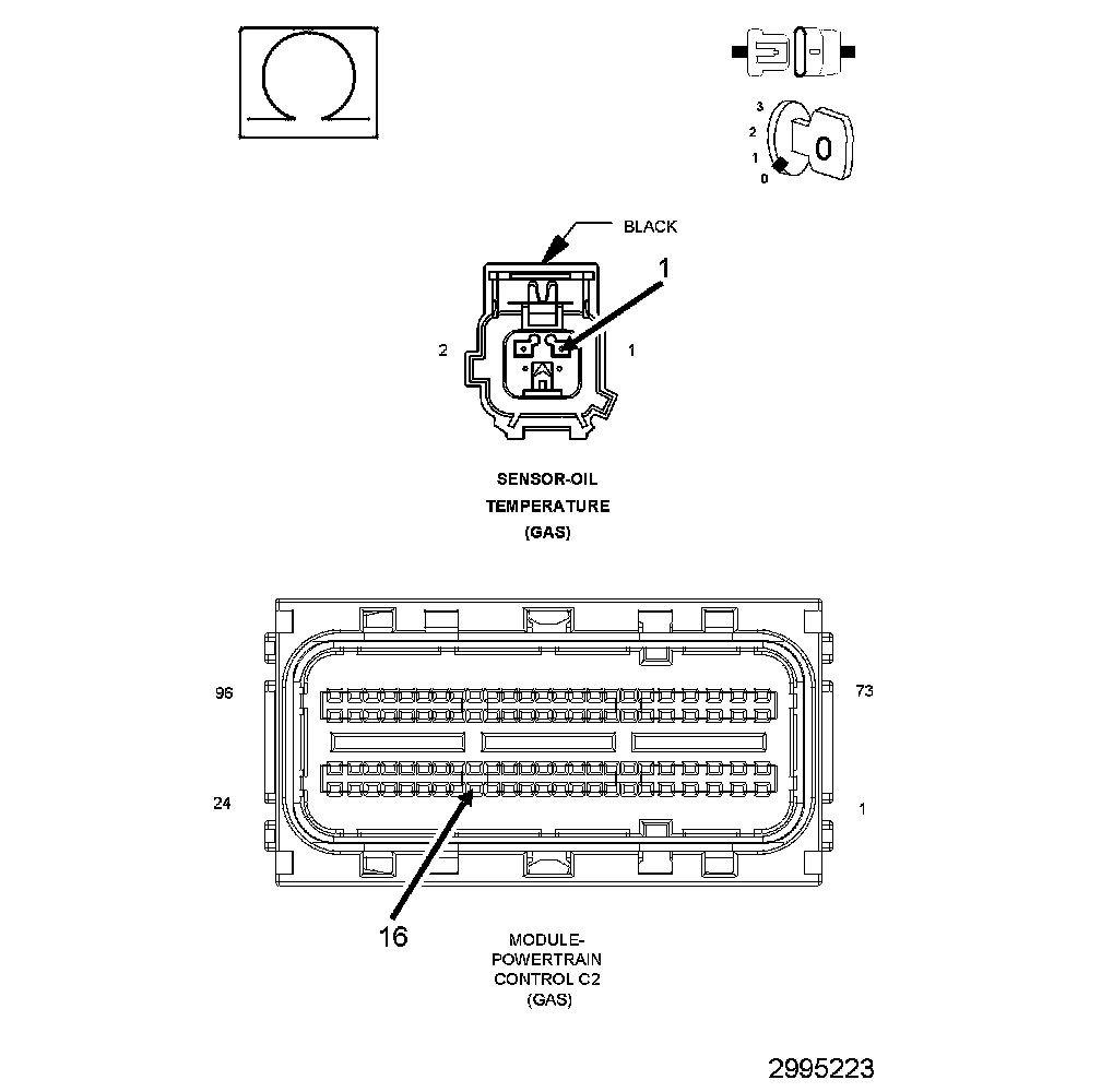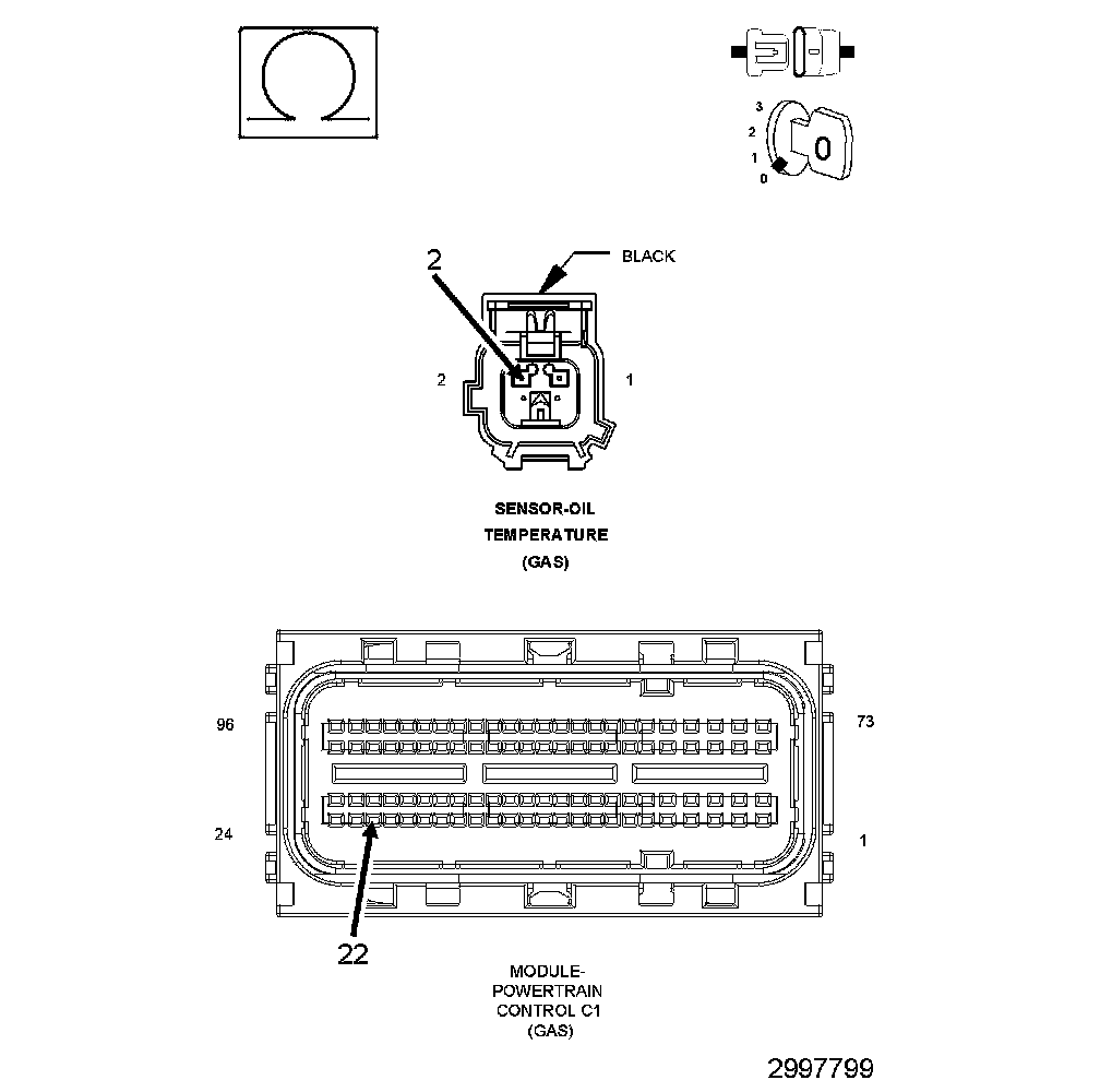 1. Using the wiring diagram/schematic as a guide, inspect the wiring and connectors between the Engine Oil Temperature Sensor and the Powertrain Control Module (PCM).