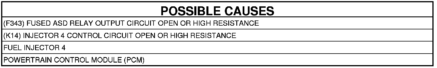 3. (K14) INJECTOR 4 CONTROL CIRCUIT OPEN OR HIGH RESISTANCE