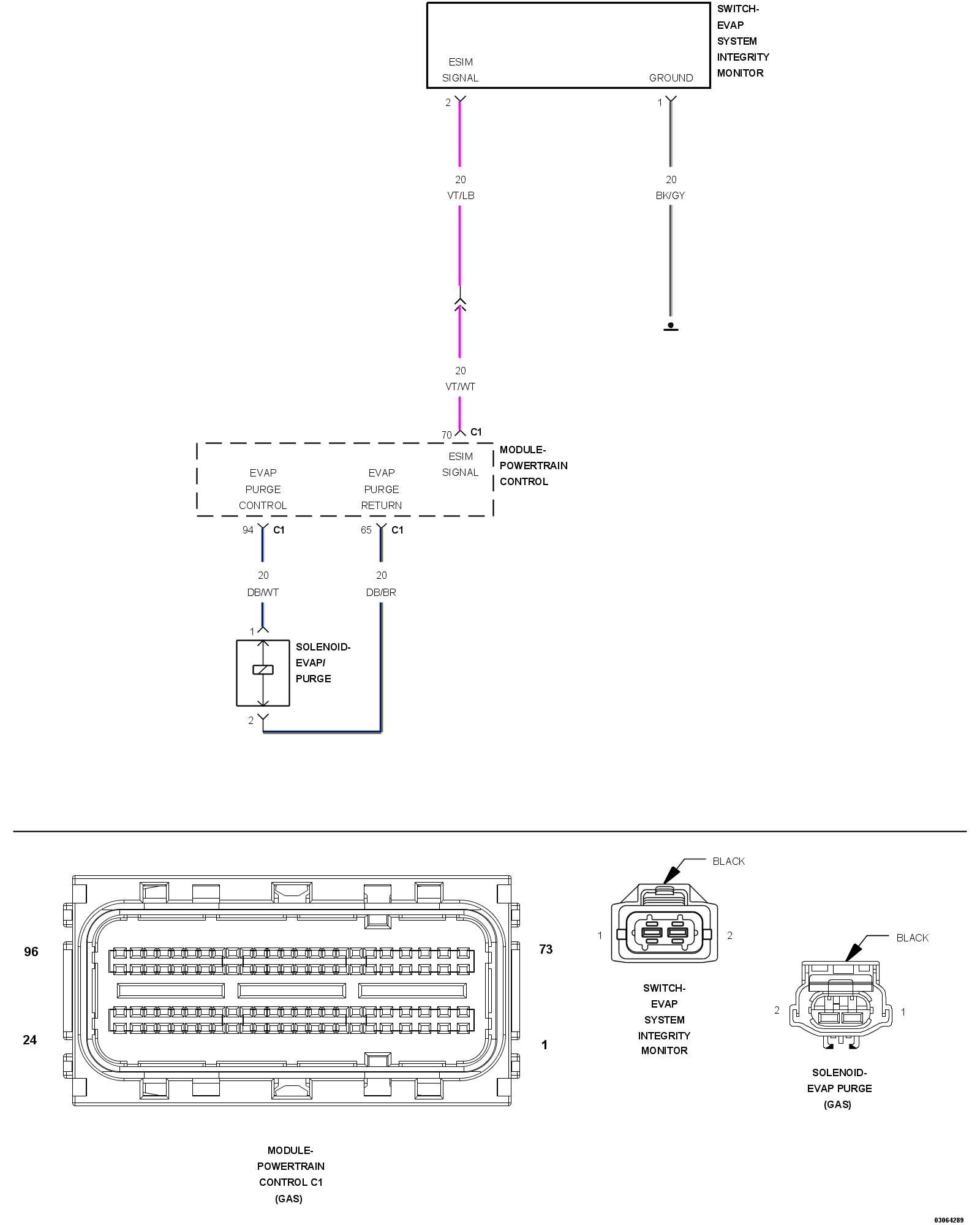 4. Verify that there is good pin to terminal contact in the ESIM Switch and the Powertrain Control Module harness connectors.