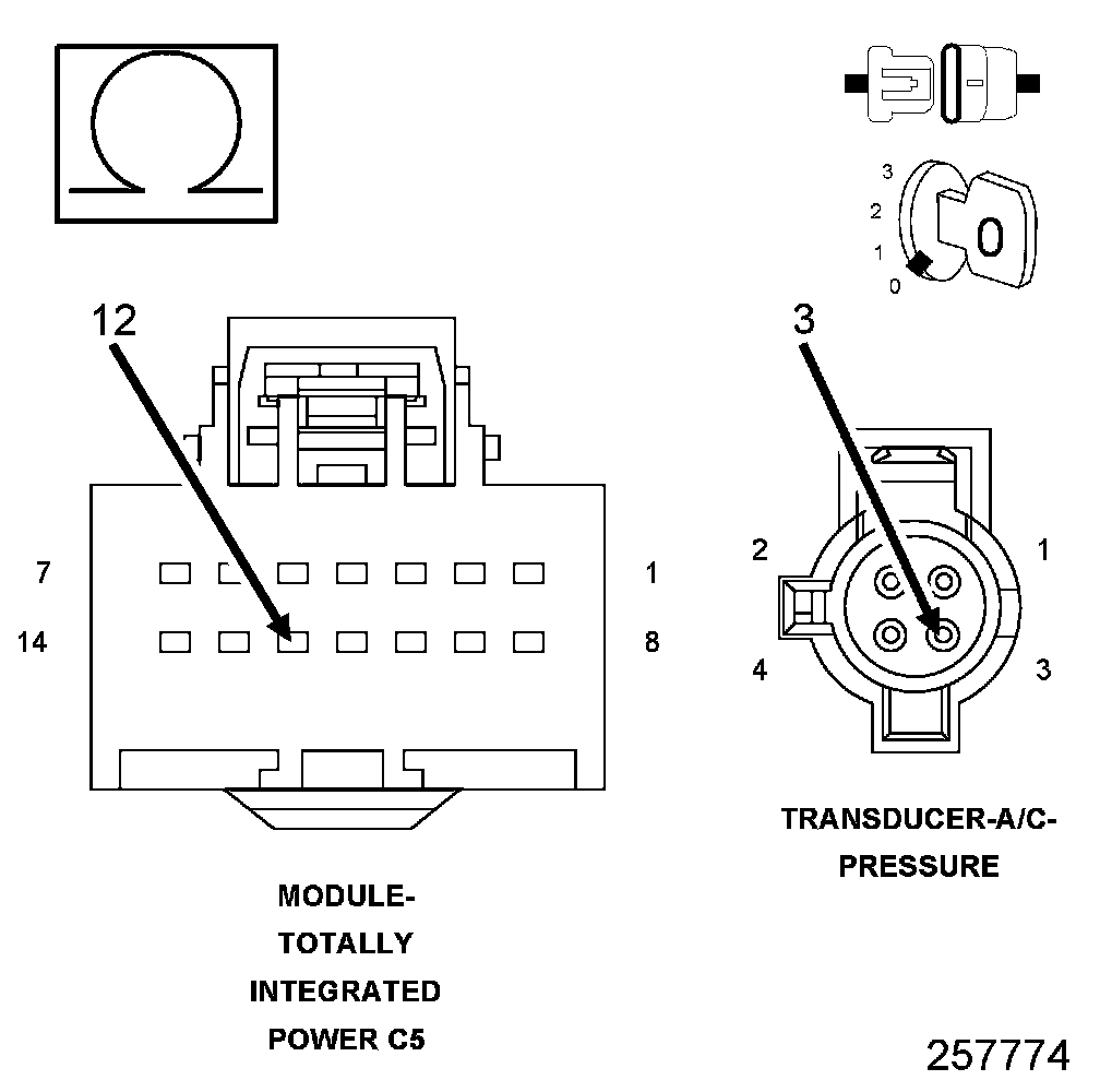 1. Using the wiring diagram/schematic as a guide, inspect the wiring and connectors between the A/C Pressure Transducer and the Totally Integrated Power Module (TIPM).