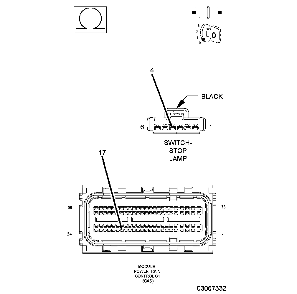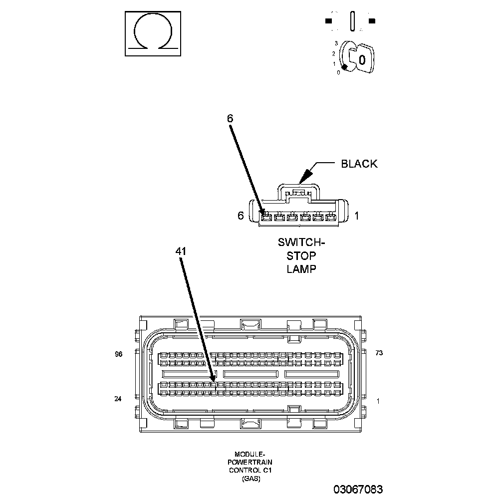 1. Using the wiring diagram/schematic as a guide, inspect the wiring and connectors between the Stop Lamp Switch and the Powertrain Control Module (PCM).