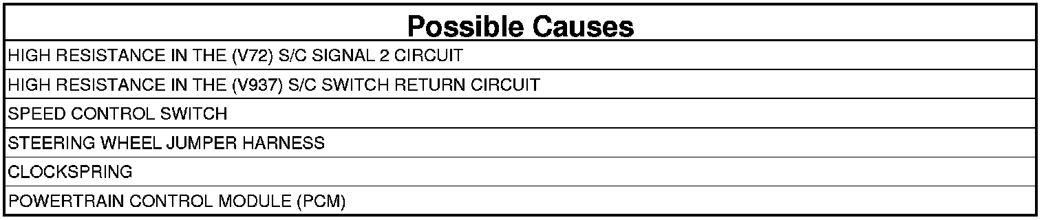 NOTE: This DTC is a two trip fault. If the scan tool indicates a one trip failure, the possible cause may have been the customer pressing switches simultaneously. Test drive the vehicle and activate the Speed Control system. If the DTC matures to an active fault a repair is necessary.