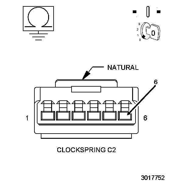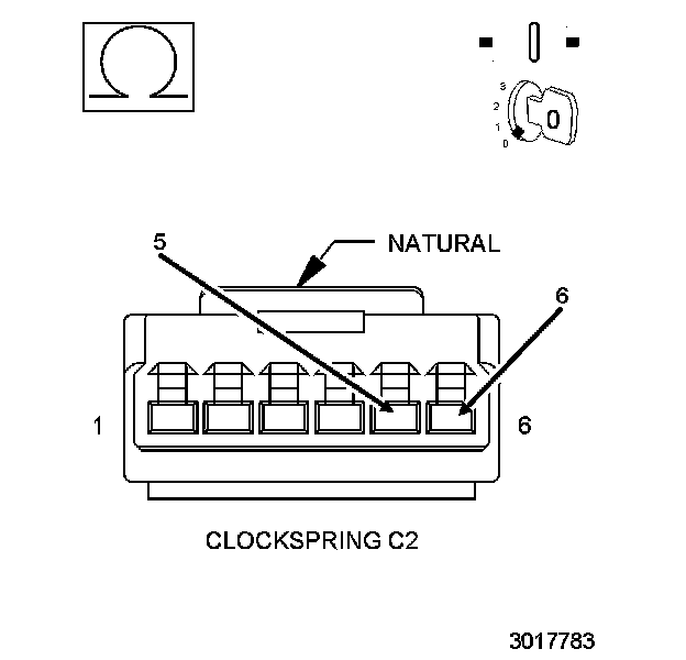 1. Measure the resistance between ground and the (V71) S/C Signal 1 circuit at the Clockspring C2 harness connector.