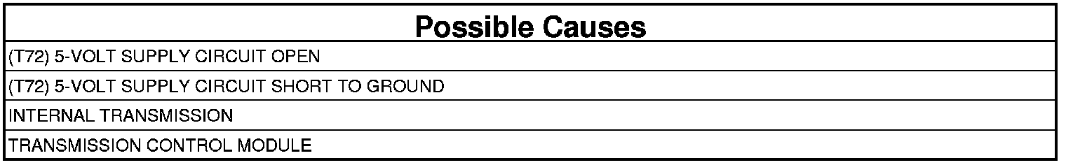 A common 5-volt power supply is used by both the primary and secondary pressure sensors as well as an internal ROM Assembly. If the power supply does not maintain a predetermined voltage range to the pressure sensors after the period of 5.0 seconds, the Transmission Control Module (TCM) sets the DTC and illuminates the MIL.