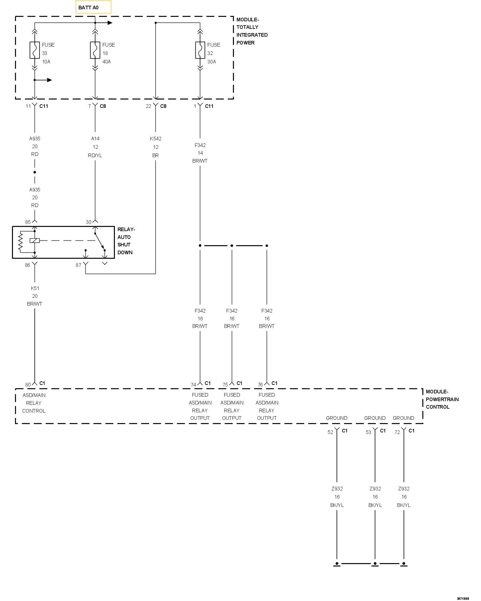 - Repair the (K51) ASD Relay Control circuit for a short to voltage.