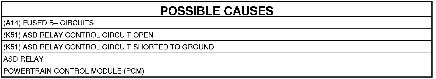 - Repair the (K51) ASD Relay Control circuit for a short to ground.