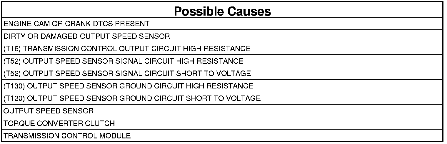 - Repair the (T130) Output Speed Sensor Ground circuit for an open or high resistance.