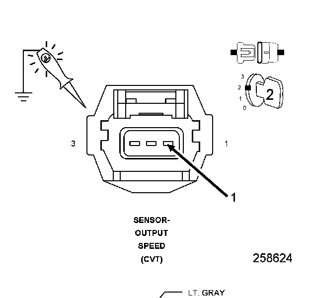 4. Using a 12-volt test light connected to ground, check the (T16) Transmission Control Output circuit at the Output Speed Sensor harness connector.