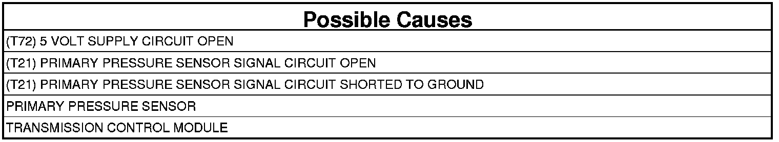 The Transmission Control Module (TCM) monitors the input voltage from the primary pulley pressure sensor. When the voltage is below a predetermined limit a DTC will set.