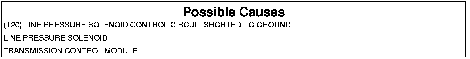 - Repair the (T20) Line Pressure Solenoid Control circuit for a short to ground.