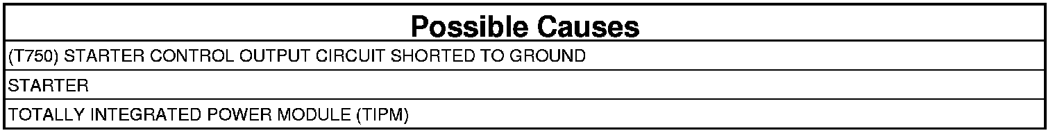 - Repair the short to ground in the (T750) Starter Control Output circuit.
