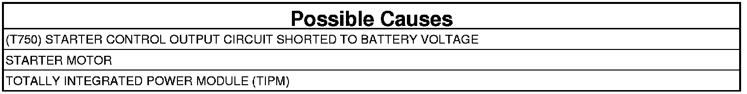 - Repair the short to voltage in the (T750) Starter Control Output circuit.