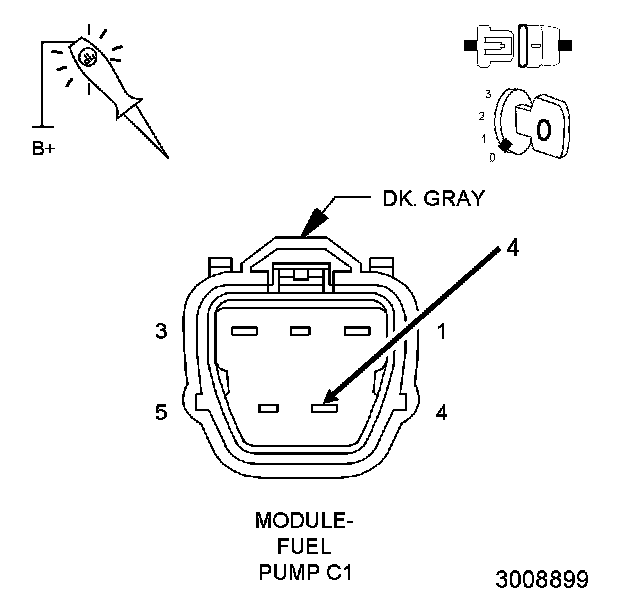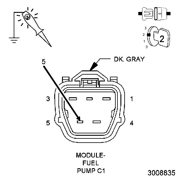 3. Using a 12-volt test light to 12-volts, check the (Z906) Fuel Pump Motor Ground circuit in the Fuel Pump Module harness connector.