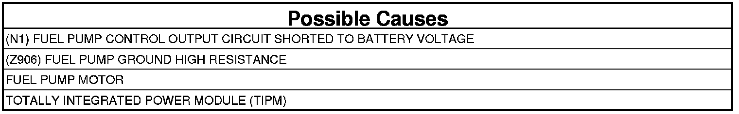 - Repair the (Z906) Fuel Pump Motor Ground circuit.