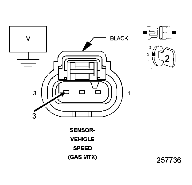 2. Using a 12-volt test light connected to 12 volts, check the (K914) Sensor Ground circuit in the Vehicle Speed Sensor harness connector.