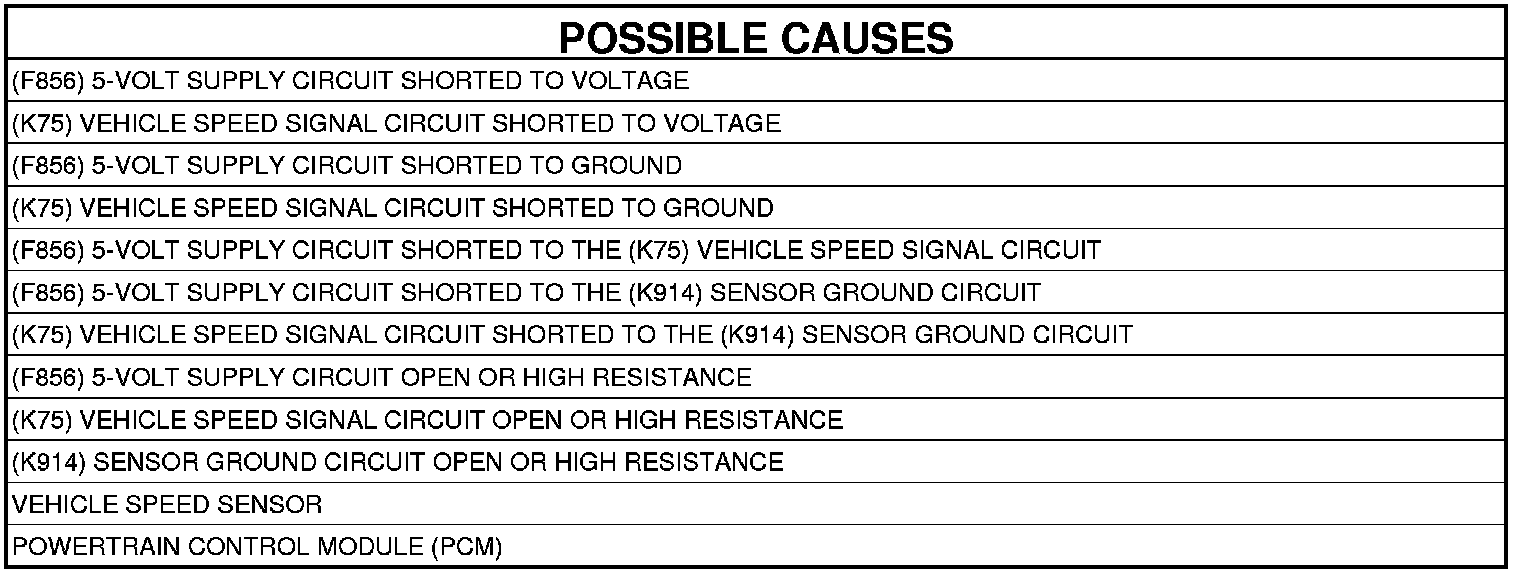 - Repair the (F856) 5-volt Supply circuit for a short to the (K75) Vehicle Speed Signal circuit.