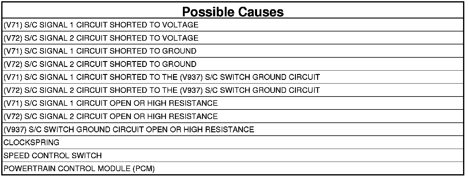 - Repair the (V72) S/C Signal 2 circuit for a short to the (V937) S/C Switch Ground circuit.