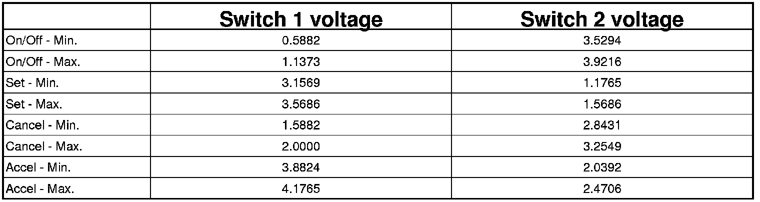NOTE: Refer to the following table when diagnosing speed control switch voltage DTCs.