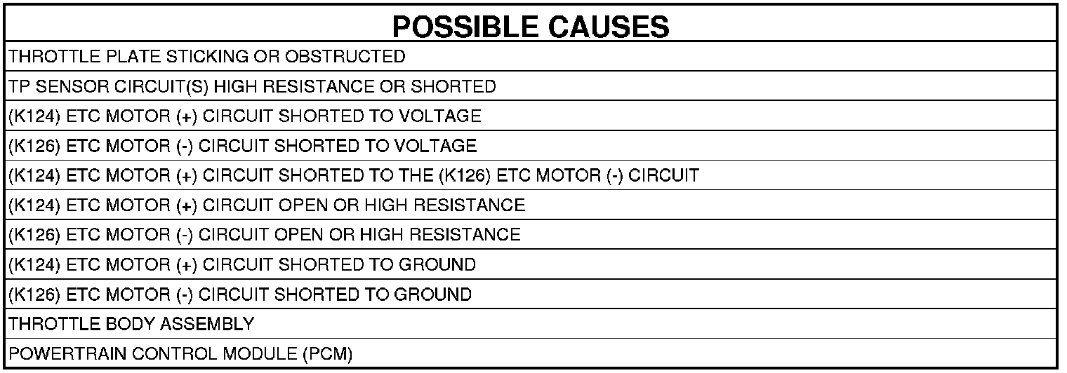 NOTE: The PCM tests the ETC Motor by opening and closing the throttle plate before starting the engine. If the throttle plate does not return to the closed position this DTC will set.