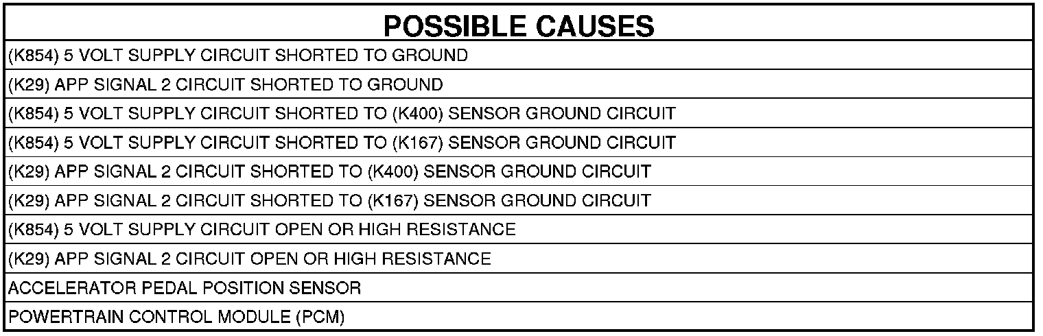 9. (K29) APP SIGNAL 2 CIRCUIT SHORTED TO THE (K167) SENSOR GROUND CIRCUIT