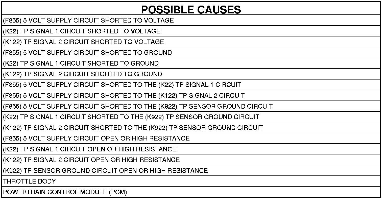15. (K22) TP SIGNAL 1 CIRCUIT SHORTED TO (K922) TP SENSOR GROUND CIRCUIT