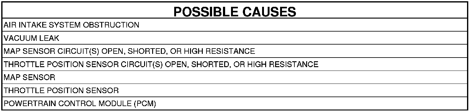 The Powertrain Control Module (PCM) detects that calculated MAP is greater than actual MAP plus an offset value. One trip fault and the code will set within 5 seconds. Three good trips to turn off the MIL. ETC light will flash.
