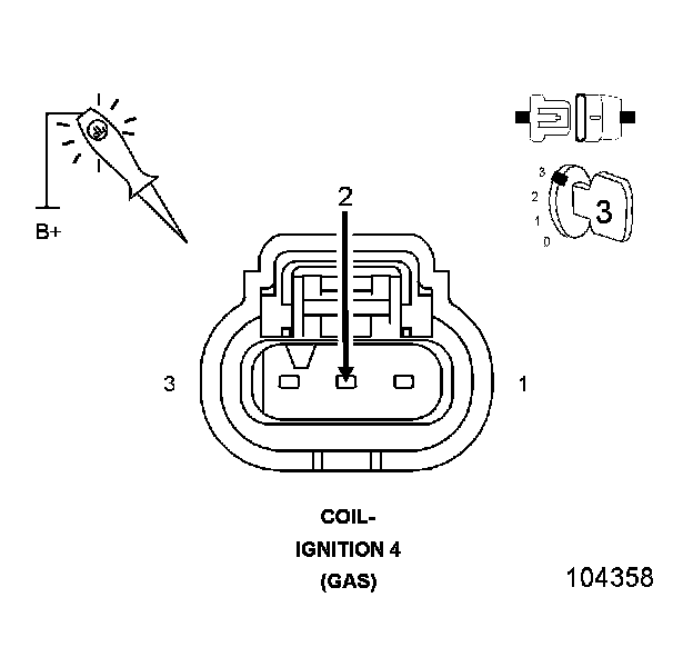 2. Using a 12-volt test light connected to 12 volts, check the (K15) Coil 4 Control circuit in the Ignition Coil 4 harness connector.