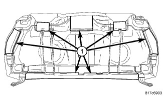 Place the cushion cover (3) onto the cushion foam (1) and install new hog rings (2).