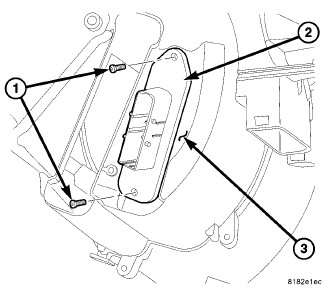 2. Install the two screws (1) that secure the PTC heater unit to the air distribution housing. Tighten the screws to 1.2 Nm (10 in. lbs.).