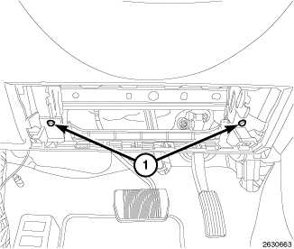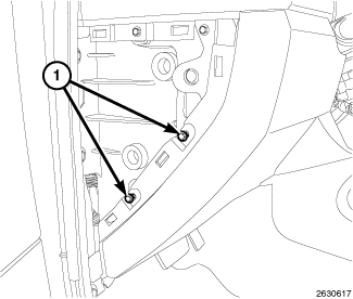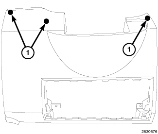 1. Position the steering column opening cover in place and seat the three clips (1) fully.