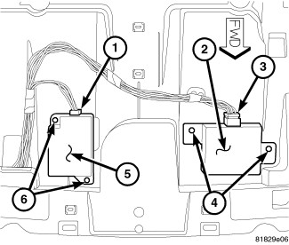 4. Disconnect the RCM electrical connector (1) and remove the RCM from the vehicle.