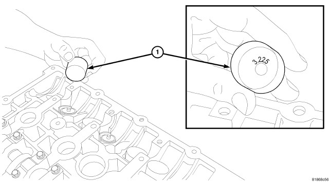 3. Rotate camshaft so lobes are vertical (1).