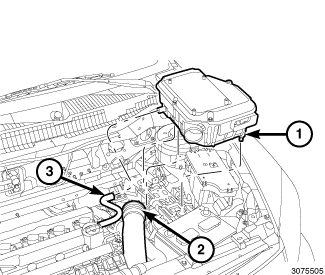 2. Remove the bolts (3) that secure the PCM (4) to the air cleaner body cover and position aside.