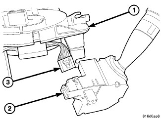 3. Connect the electrical connectors (2) to the instrument panel harness, ensure wiring is properly routed. Then check that the connectors, locking tabs are properly engaged.