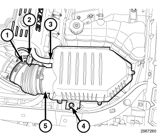1. Install the IAT sensor (2) into the rubber air intake hose, turn the IAT sensor 1/4 turn clockwise and lock into position.