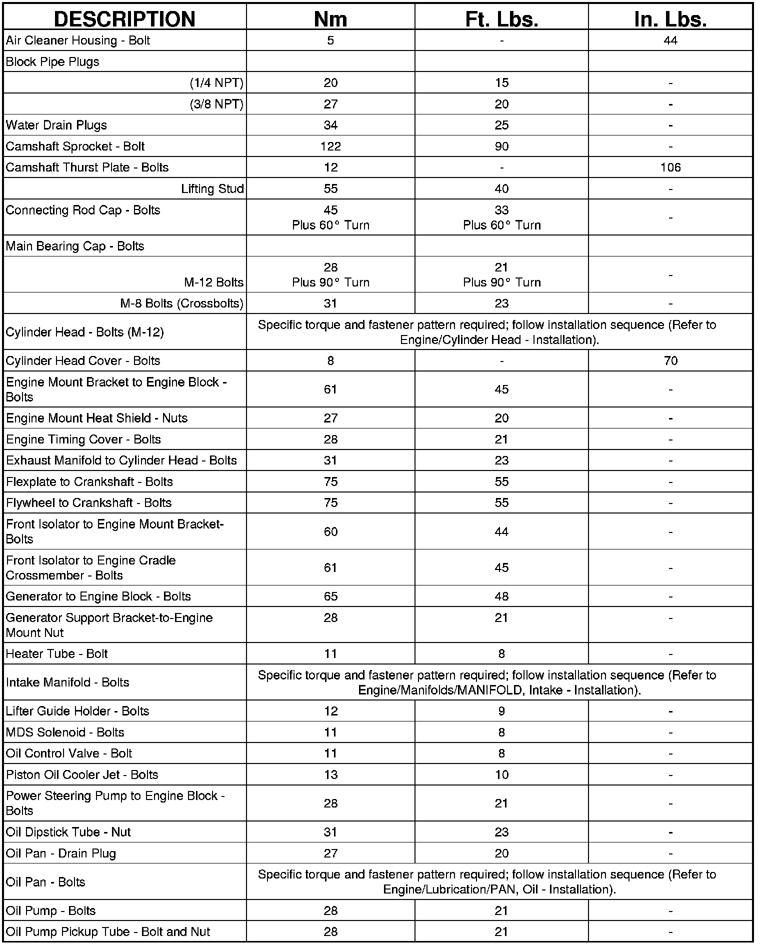 Engine Torque Specifications