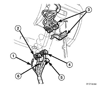 9. Connect the wire harness connectors (2, 4, 5 and 6) to the instrument panel wire harness connector (3).