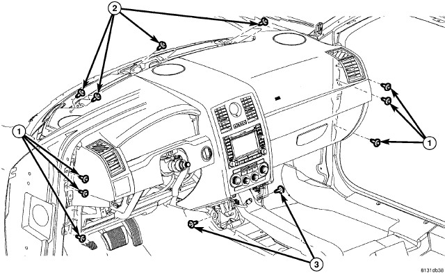 - Bottom of instrument panel (3) to 6 Nm (53 in. lbs.).