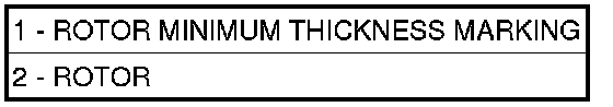 NOTE: Most brake rotors (2) have markings for minimum allowable thickness specification cast into an unmachined surface of the rotor or stamped into the hat section (1). Some brake rotors have the minimum thickness specification located elsewhere. Refer to the following paragraph. Minimum thickness specifications can also be found in this component's specification table [1][2]Brake Rotor/Disc .