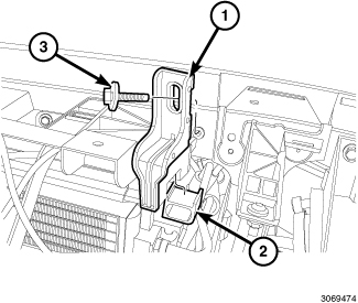 2. Install the radiator mounting bracket (1) and bolts (2). Tighten to 12 Nm (106 in. lbs.).