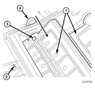 1. Install the air doors (1) into the air distribution housing (2) as required. Align the air door with the pivot shaft hole in the housing.