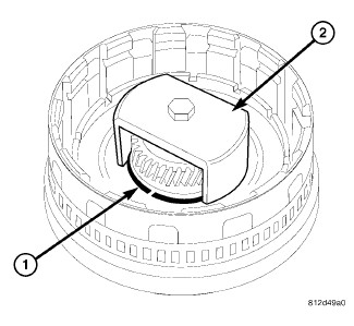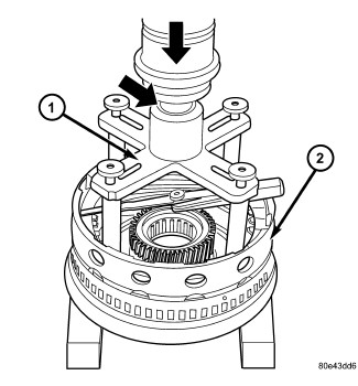 4. Place Multi-use Spring Compressor (2) (Figure 2) on spring plate and compress the spring until the groove of the snap-ring (1) is exposed.
