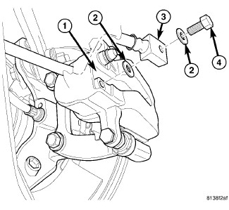 CAUTION: Extreme caution should be taken not to cross thread caliper guide pin bolts (2) when they are installed.