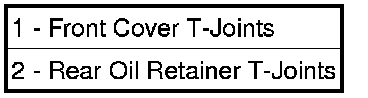 NOTE: Mopar(R) Engine RTV must be applied to the 4 T-joints, the area where the front cover, rear retainer and oil pan gasket meet. The bead of RTV should cover the bottom of the gasket. This area is approximately 4.5 mm x 25 mm in each of the 4 T-joint locations.
