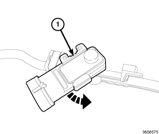 2. Install the fuel tank pressure sensor (1) into the fuel tank vent tube and rotate until it locks into position.