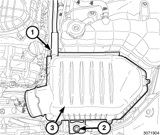 6. Lift the air inlet hose assembly retaining grommet off the ball stud (4).