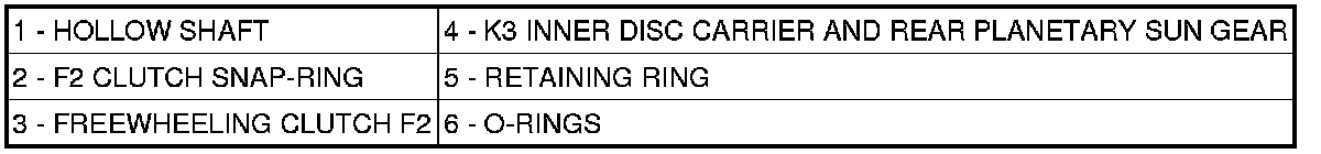 5. Verify proper operation of the freewheeling clutch F2. When the assembly is held with the F2 clutch snap-ring upward, it should be possible to rotate the hollow shaft counter-clockwise.