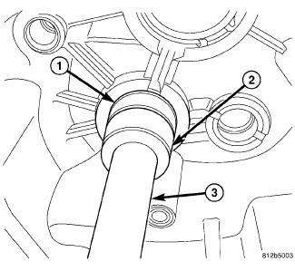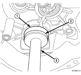 2. Install mainshaft bearing cup (1) with Installer (2) and Handle (3).